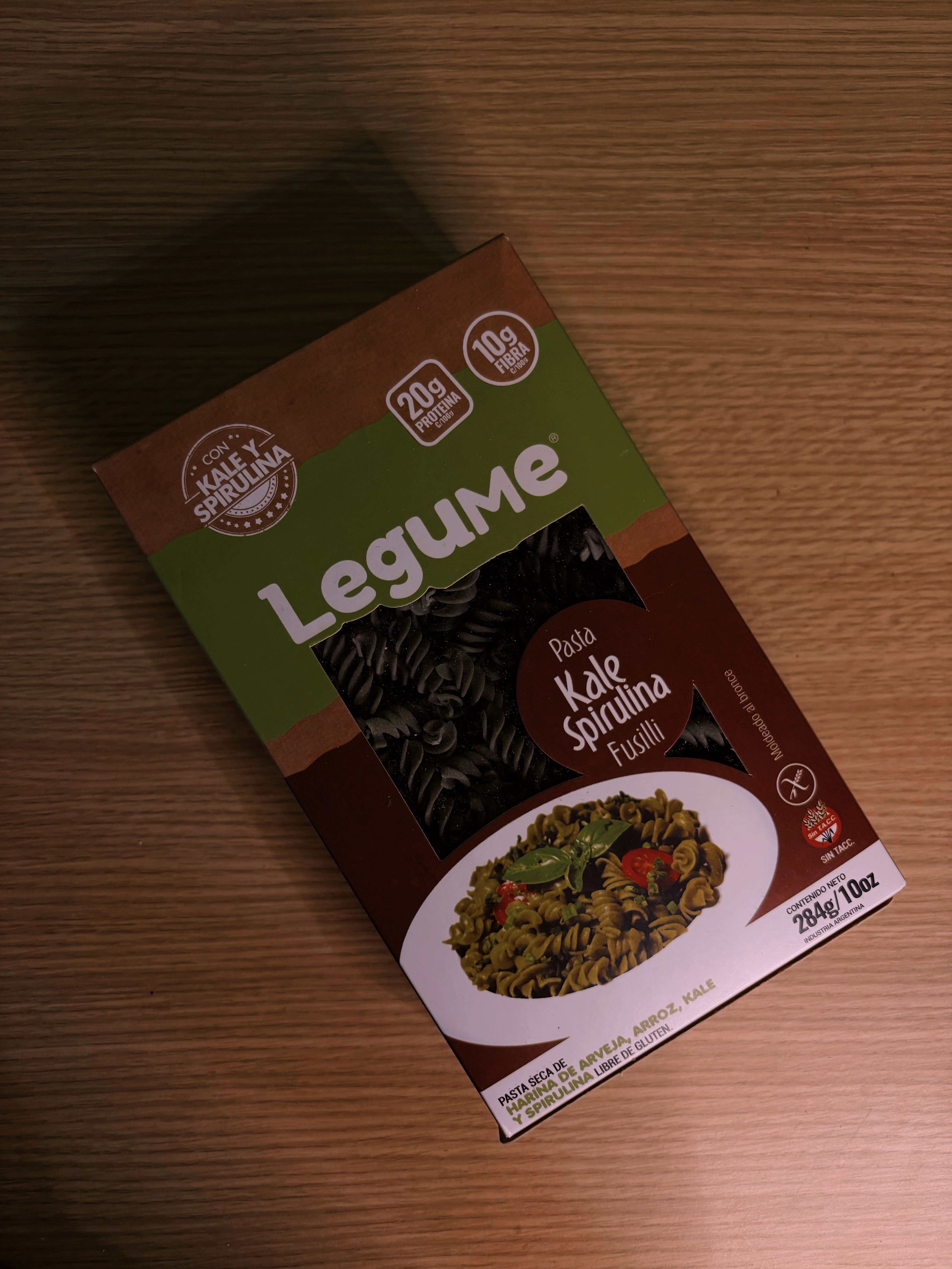 Pasta Legume sabor kale y spirulina. Sin TACC
